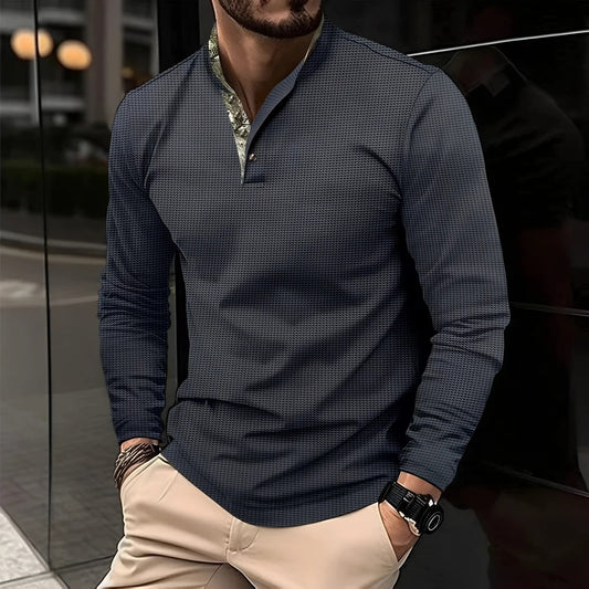Heren Henley Casual Shirt met Lange Mouwen